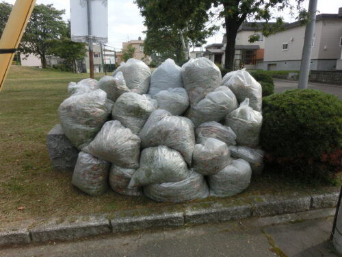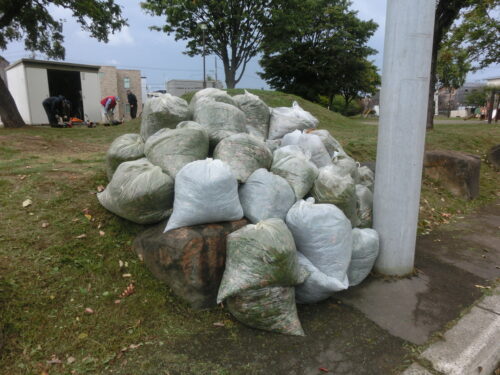 両日ともに18名が参加、刈り取った草は、1日は63袋、7日は43袋にもなりました。