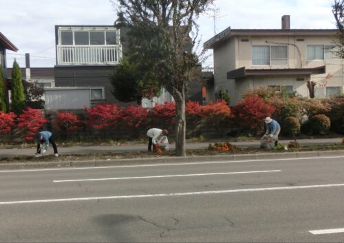 作業箇所は北野通り花壇、第一及び第二公園、厚別川左岸緑地の4か所で、班ごとに最寄りの場所が割り当てられました。