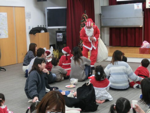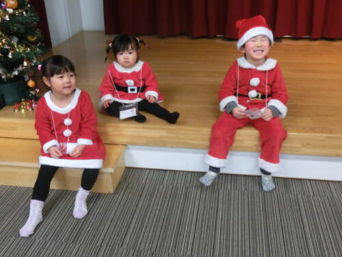続いて子供たちの「サンタさ~ん」の呼びかけでサンタクロースが登場、子供たち全員にプレゼントがありました。