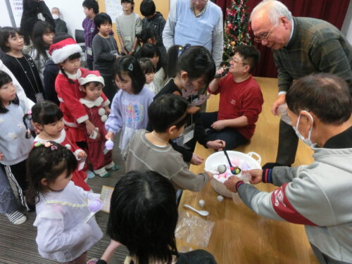 最後に、会長からの「クリスマス会はどうでしたか?」の問いに子供たちから「楽しかった」と大きな声が返ってきました。