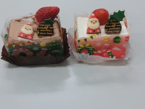 クリスマスケーキはいちごとサンタの乗った可愛らしいケーキで家族ごとに輪になっていただきました。